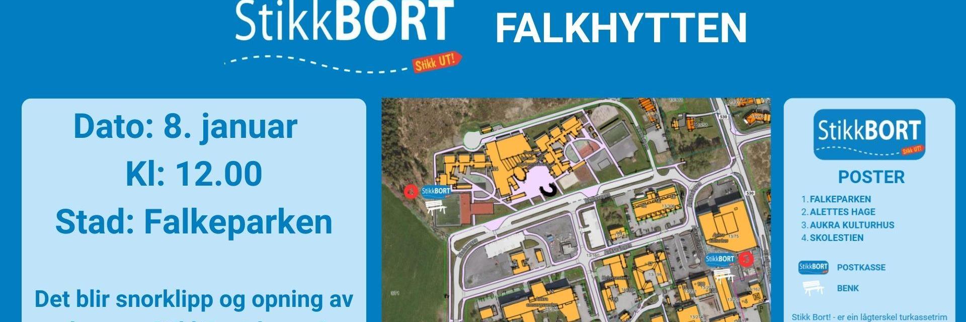 StikkBort er ein lågterskel turkassetrim med fire turmål i sentrum på Falkhytten. Alle turmål er rullestolvenleg.