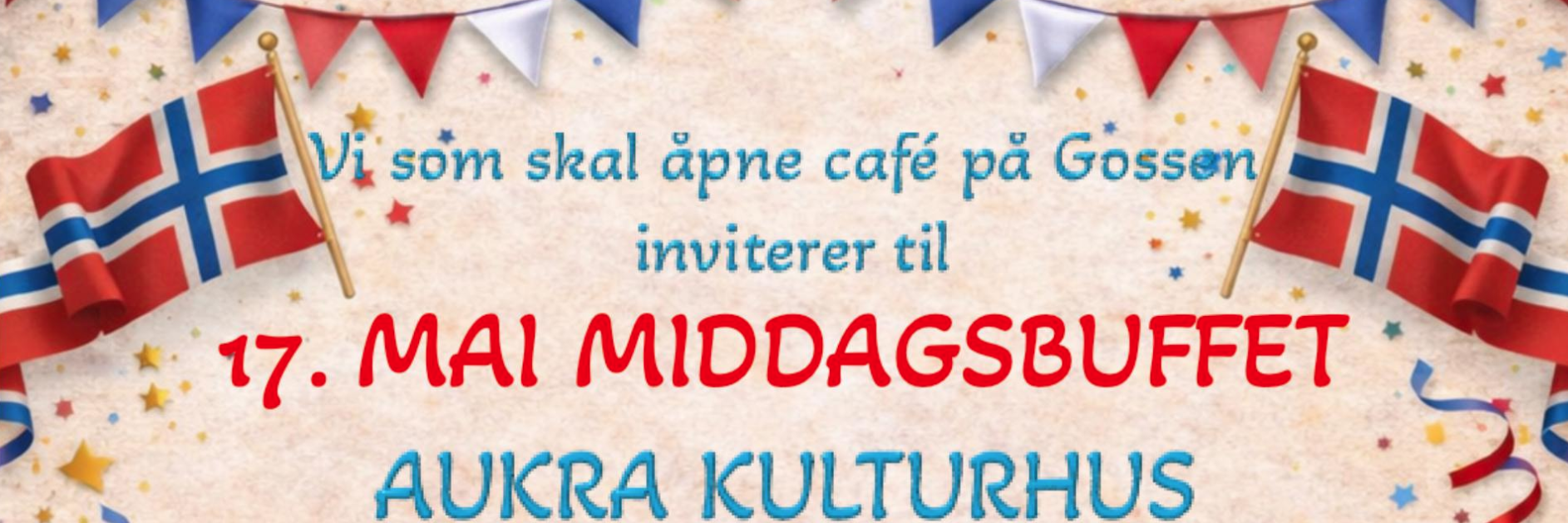 Ta middagen på kulturhuset 17. mai. Du kan velge mellom to bordsettingar - kl. 13.00 eller kl. 16.00.