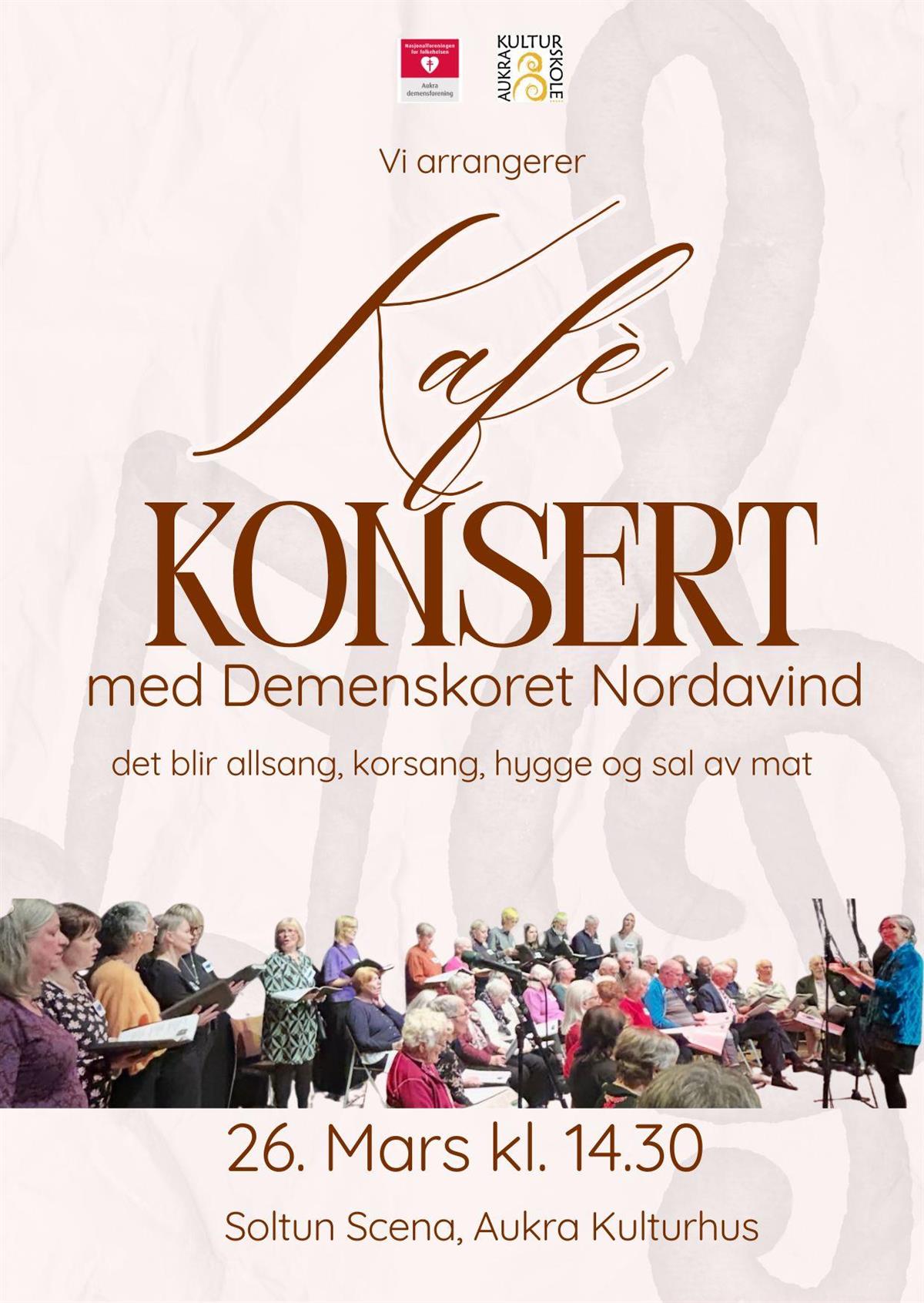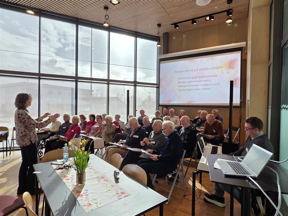 Kafè Konsert 2026 Vårlig stemning og flott korsong med demenskoret Nordavind på Soltun scene i går. Tror jammen vi fikk fram vårsola også. Takk til alle som kom, og god påske. Publisert 27.03.2026 10.50 Sist endra 27.03.2026 10.50